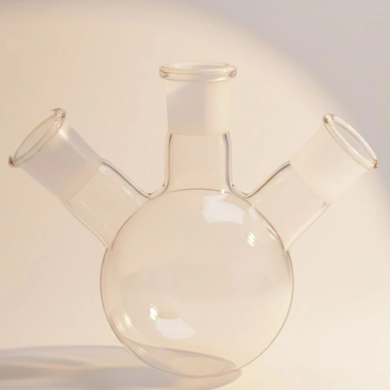 A: To determine the optimal neck configuration for your application, consider: (1) Required attachments – list all accessories needed simultaneously (condenser, thermometer, addition funnel, gas inlet, etc.) (2) Neck angles – standard configurations have the center neck vertical with side necks at 20° angles; custom angles available for special setups (3) Neck position – consider ergonomics and space constraints in your laboratory setup (4) Neck diameters – match to the joint size of your existing equipment (standard 24/29 or custom sizes) (5) Specific process requirements – reflux reactions typically need a center neck for a condenser, while addition processes may require a larger side neck. Our technical team can provide consultation on optimal configurations based on your specific experimental needs and laboratory constraints.